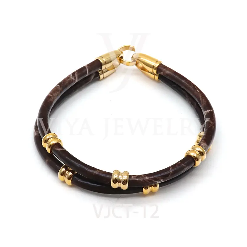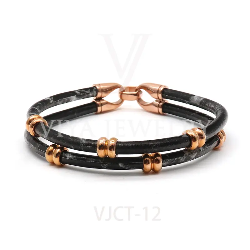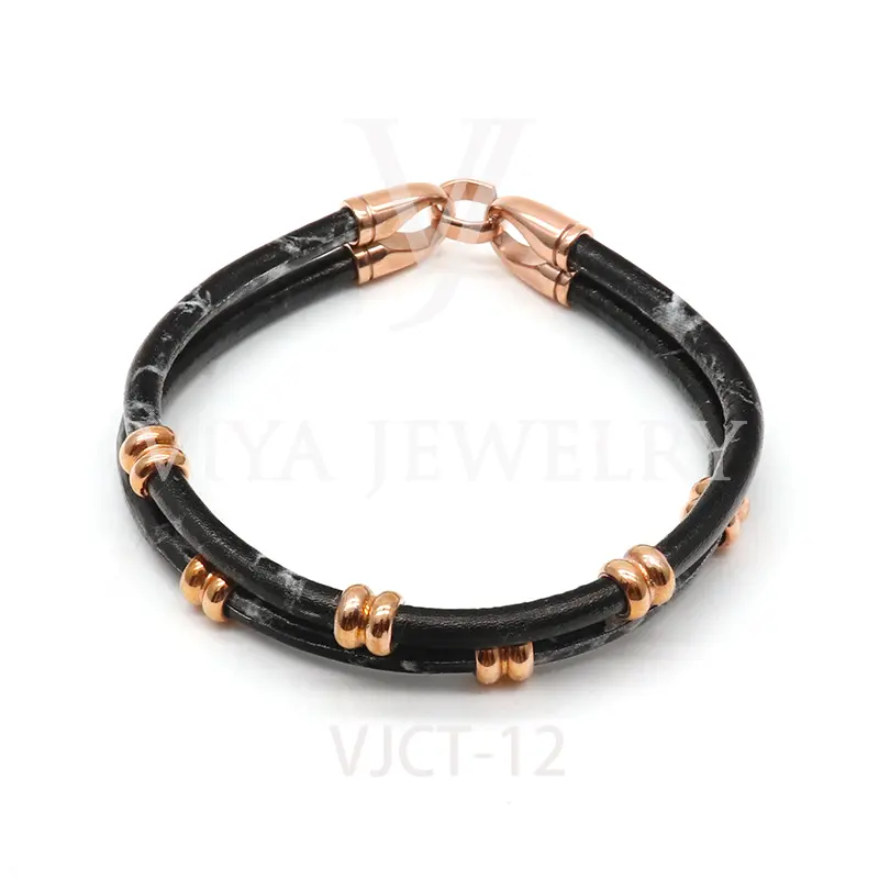 Quality cow leather unisex marble print leather bracelet