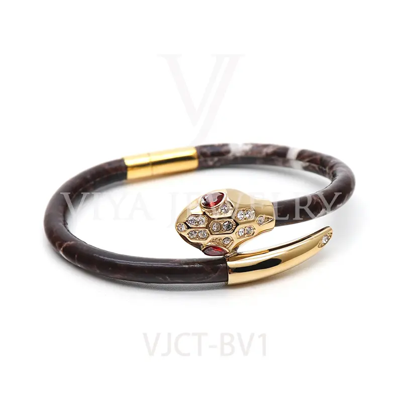 Popular Marble Cowhide Leather Snake Bracelet