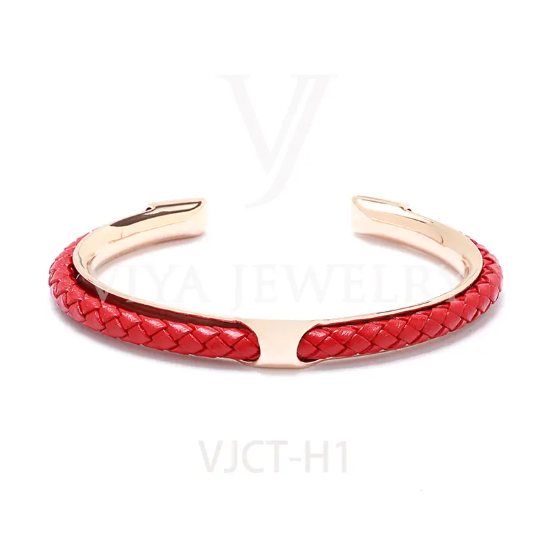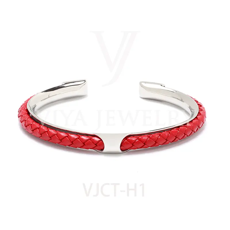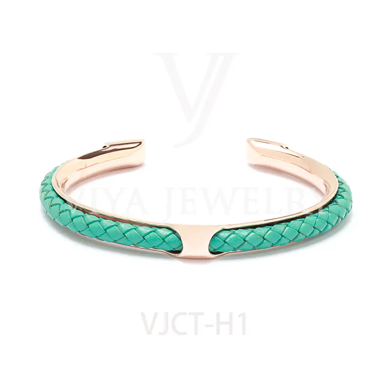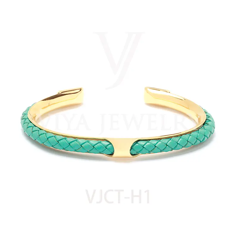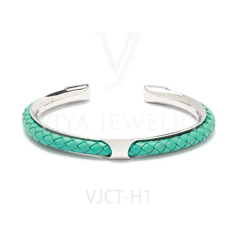 Quality synthetic leather unisex colorful leather H bangle