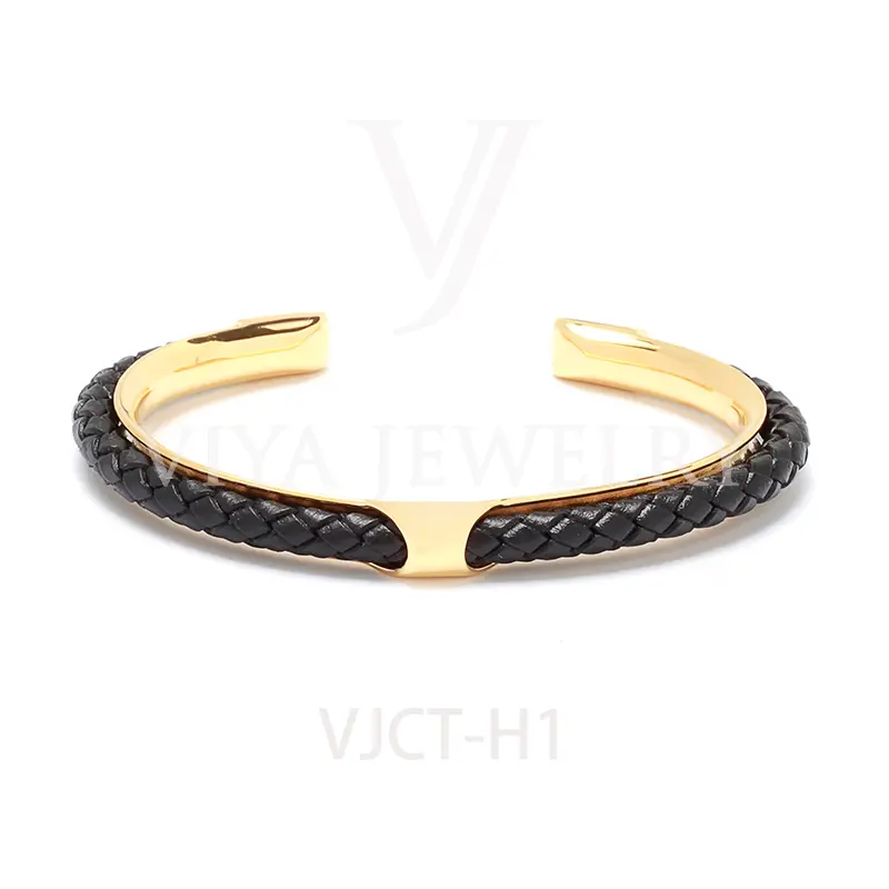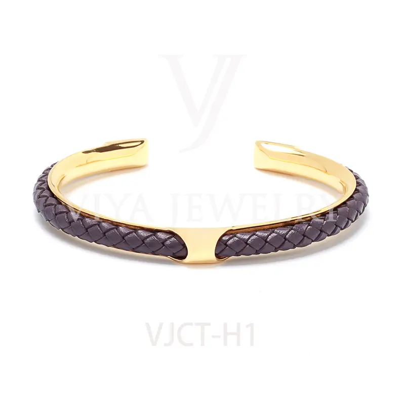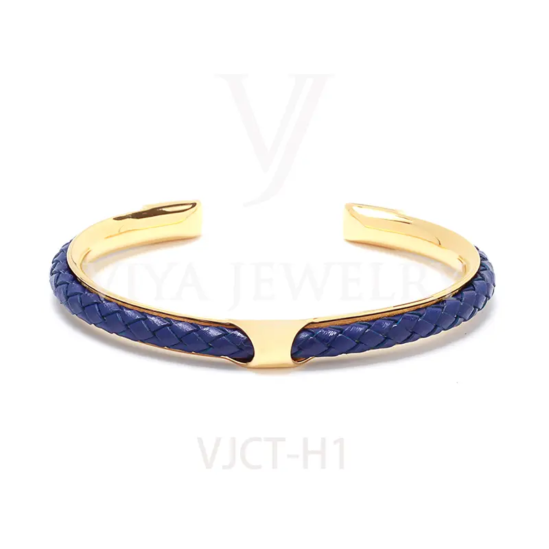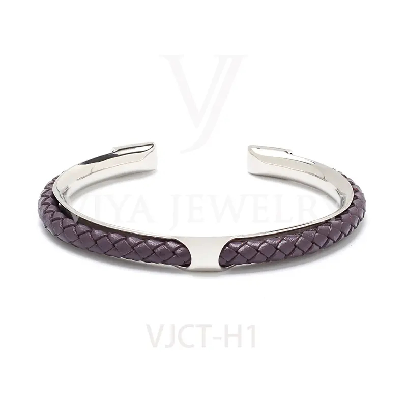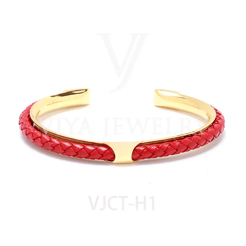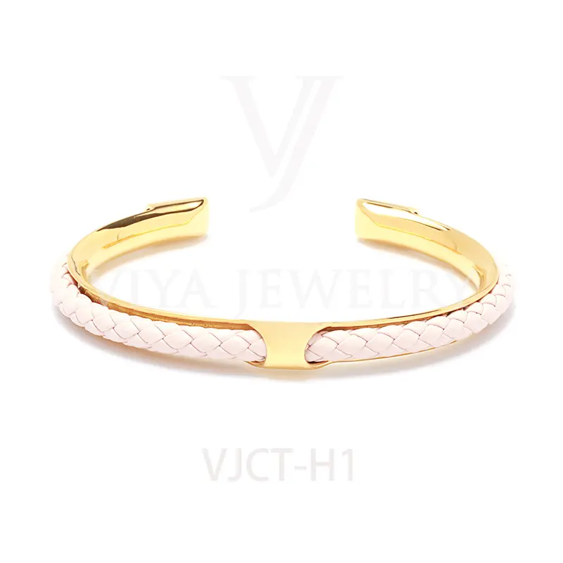 Quality synthetic leather unisex colorful leather H bangle