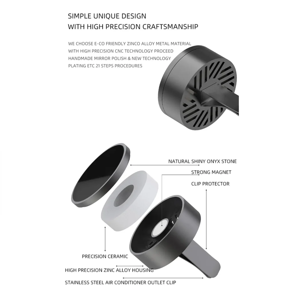 Round Shiny Natural Black Onyx Car Diffuser