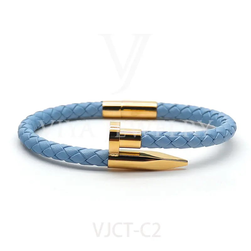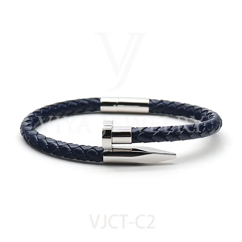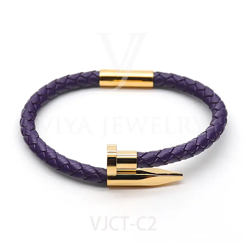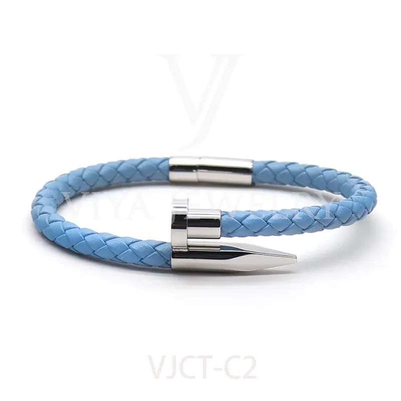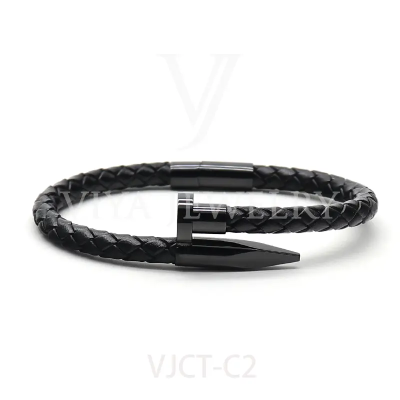 • Unisex braided lamb skin leather nail bracelet