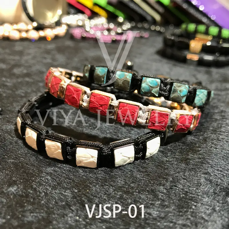 Genuine python leather square beads bracelet