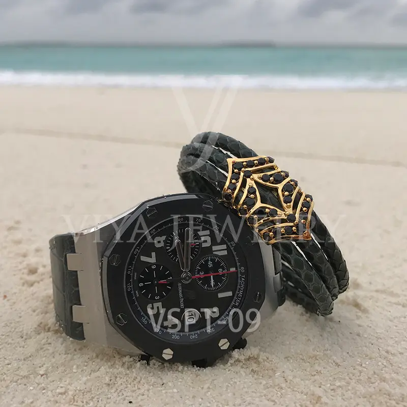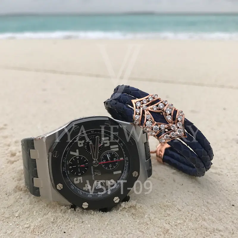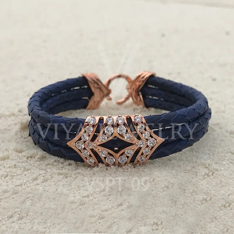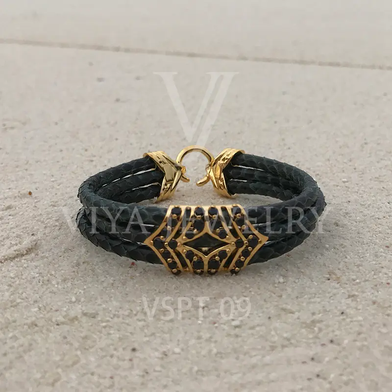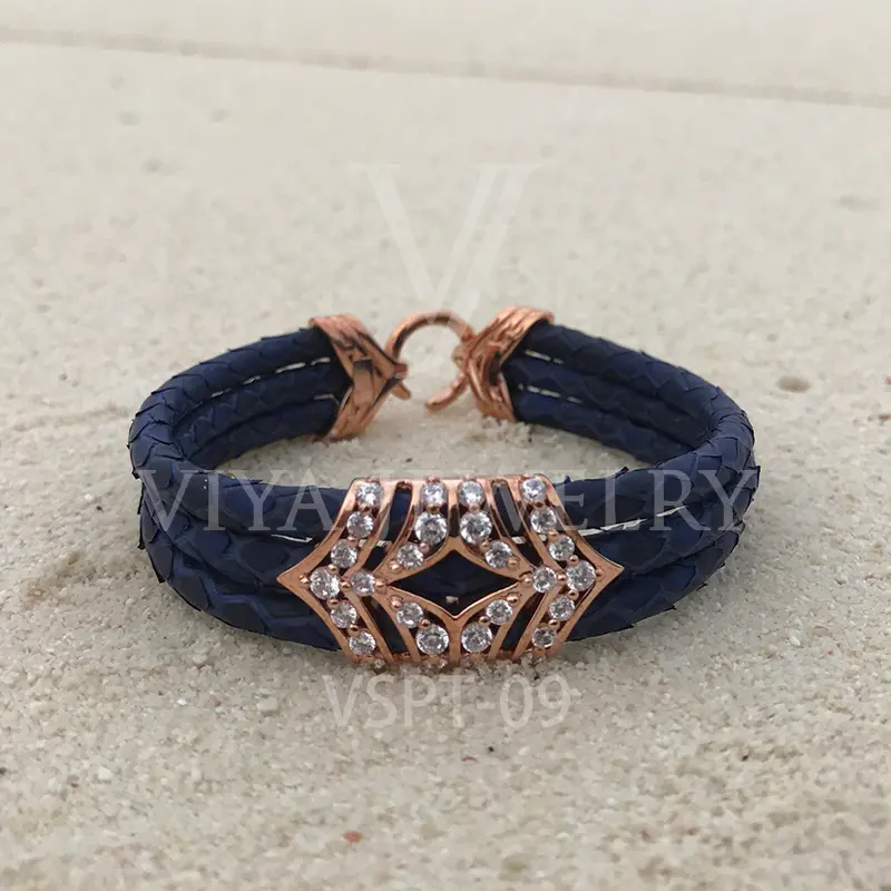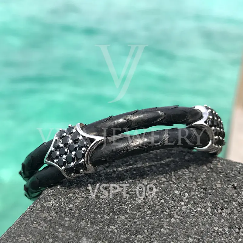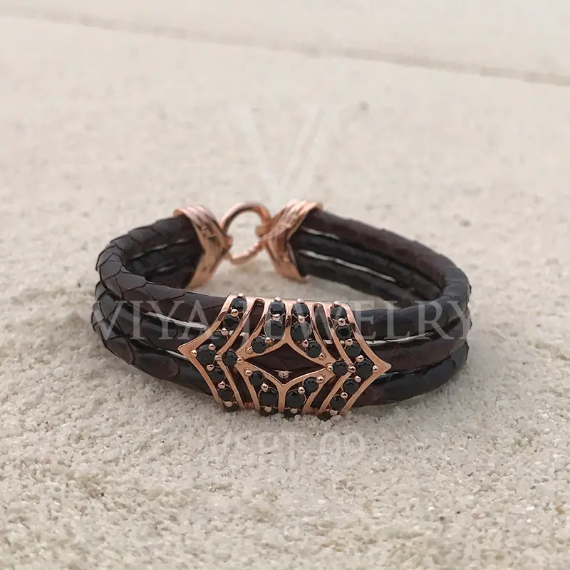Luxury Python Leather Silver Charm Bracelet