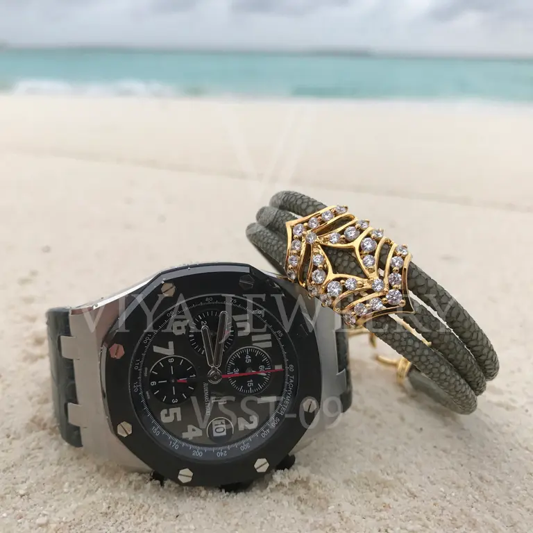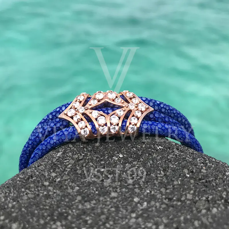 Luxury Stingray Leather Silver Charm Bracelet