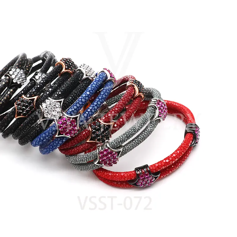Top Sale Stingray Leather 925 Sterling Silver Bracelet