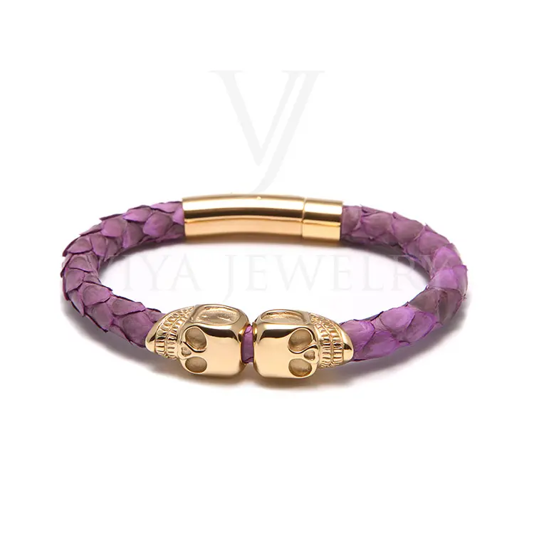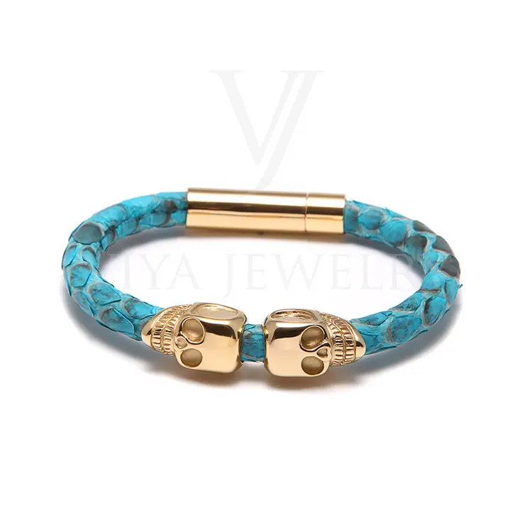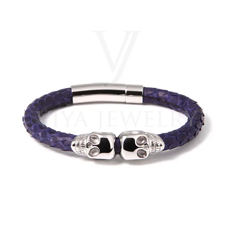 Item No:VJPT-N1 Genuine Python NorthSkull Men Bracelet Genuine 6mm Python Leather Cord Surgical 316L Stainless Steel NorthSkull Available Nail Metal Color:Silver/Rose Gold/18K Gold/Black With new technology plated,2years color guarantee Popular size Female: 17cm 18cm 18.5cm Male:19cm 20cm 21cm Customzied size are available Customized logo are welcome MOQ:20pcs Leadtime: Within 5 work days DHL Door to door service Worldwide shipping