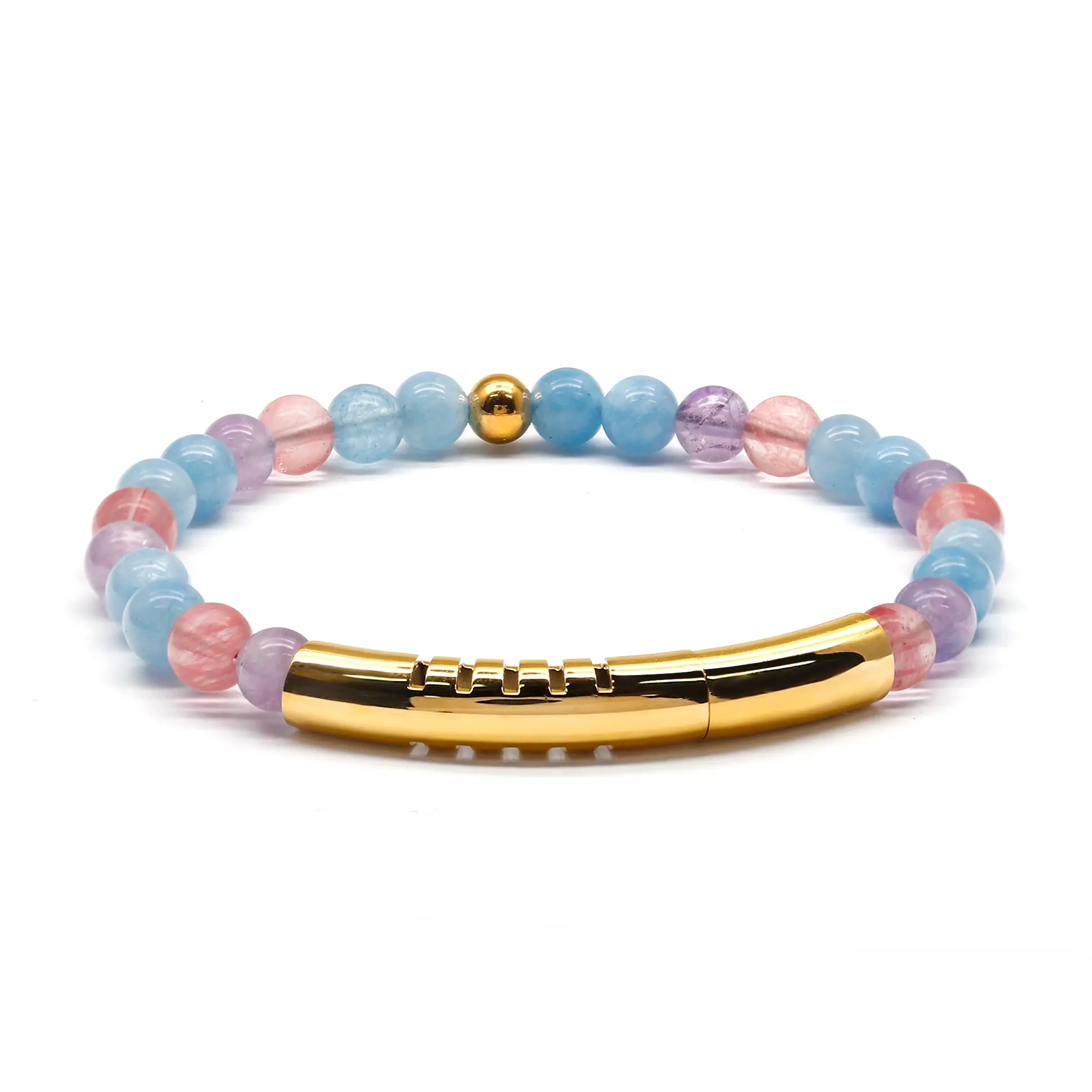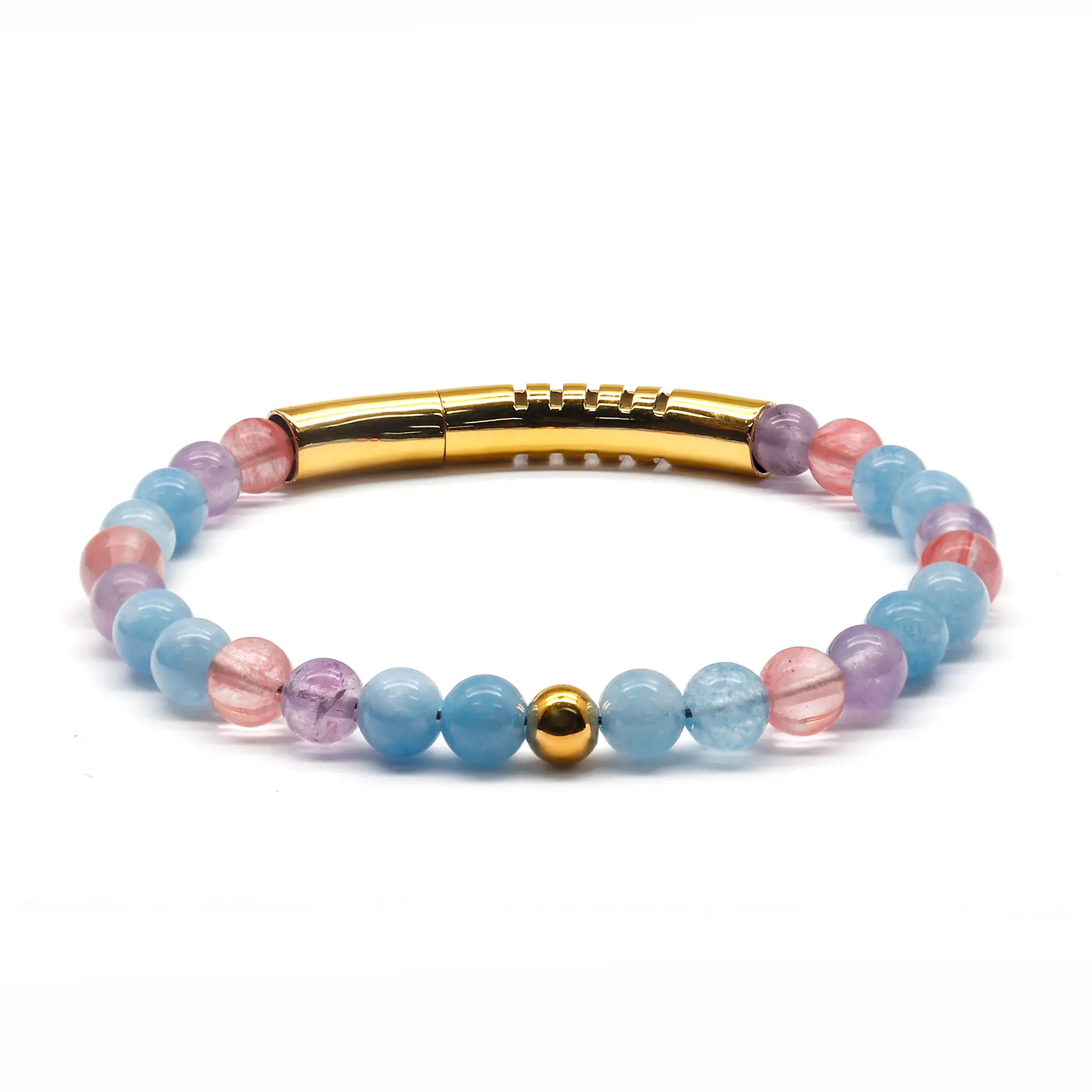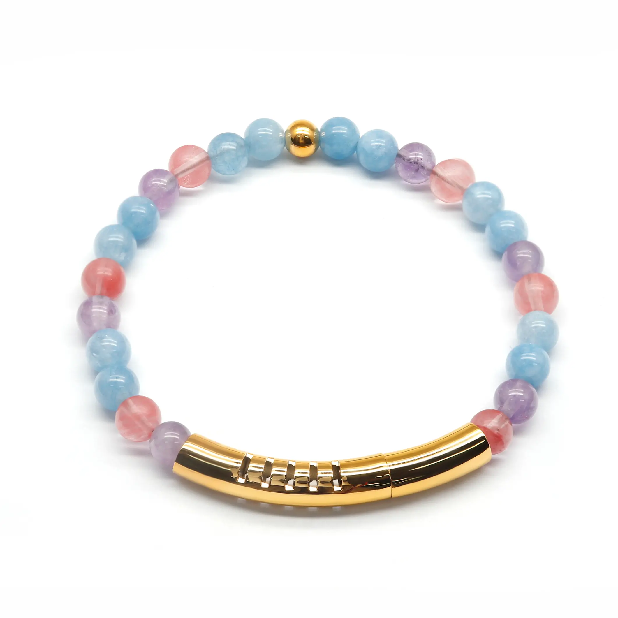 • 6mm Natural Amethyst mixed Strawberry quartz&Aquamarine&18K Gold plated beads