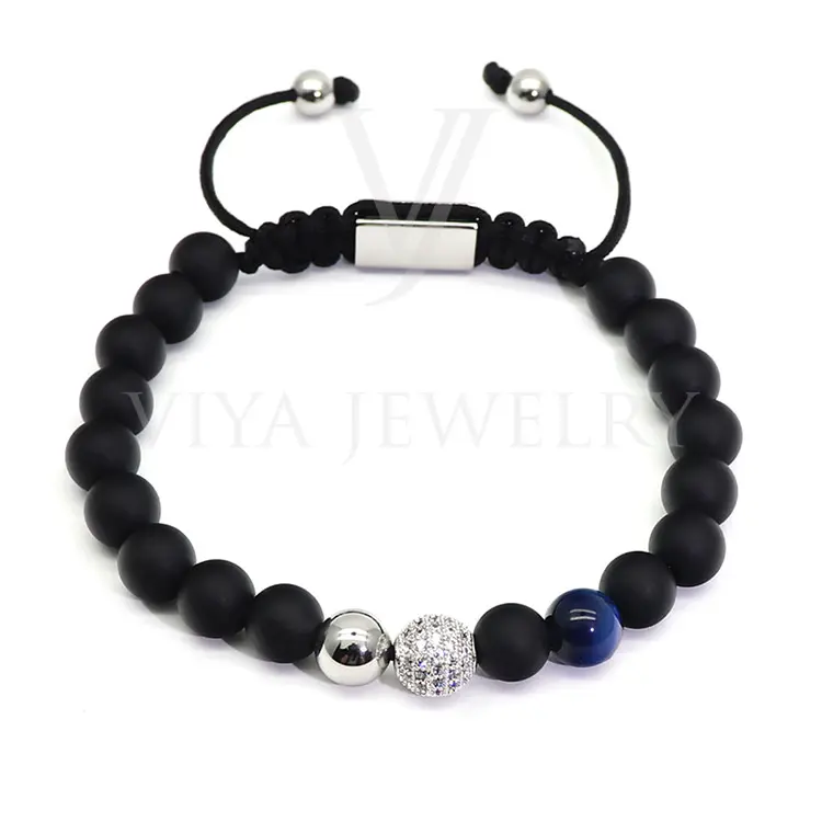 Grade AAA Black Onyx mix Blue Tiger eye beads bracelet