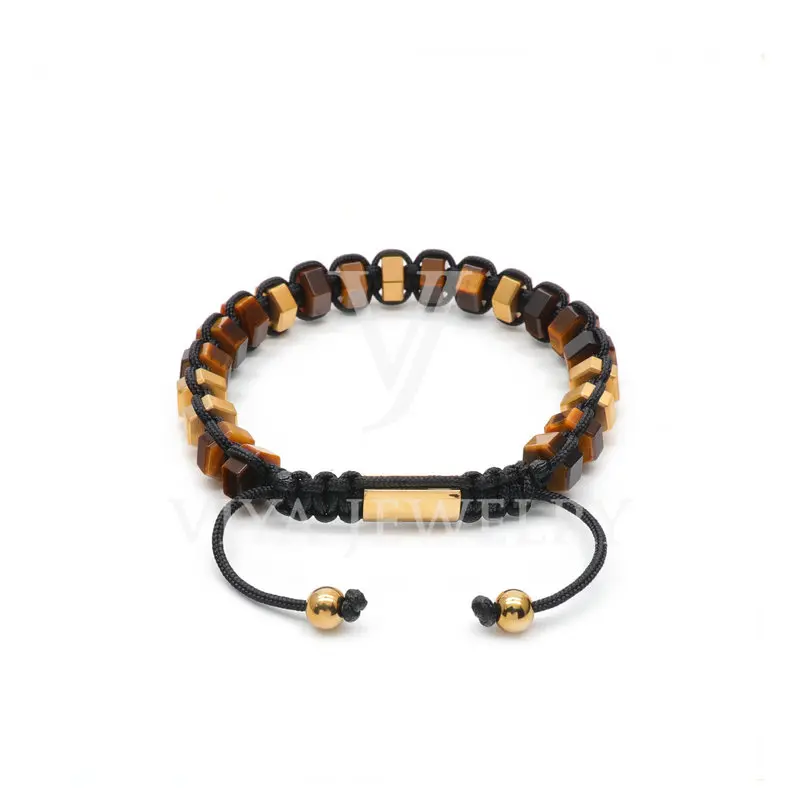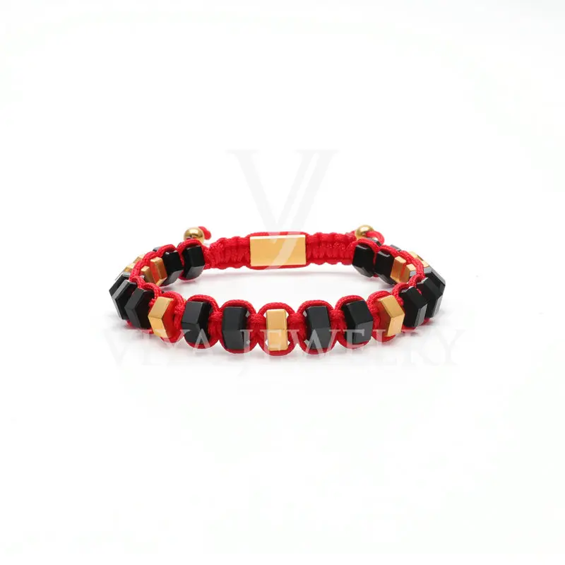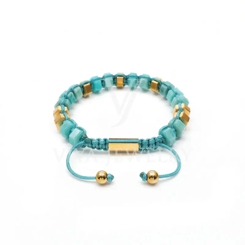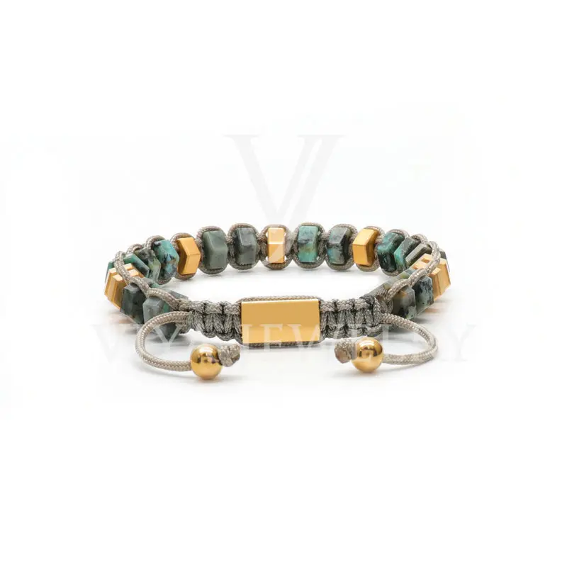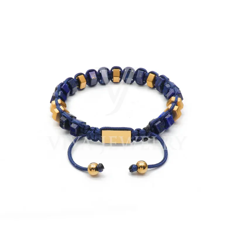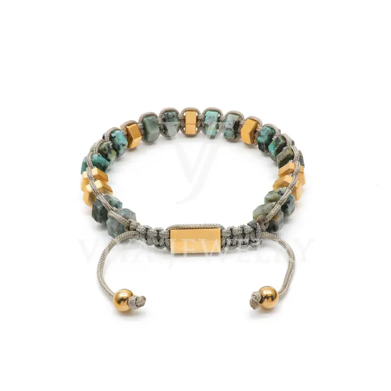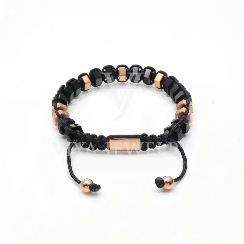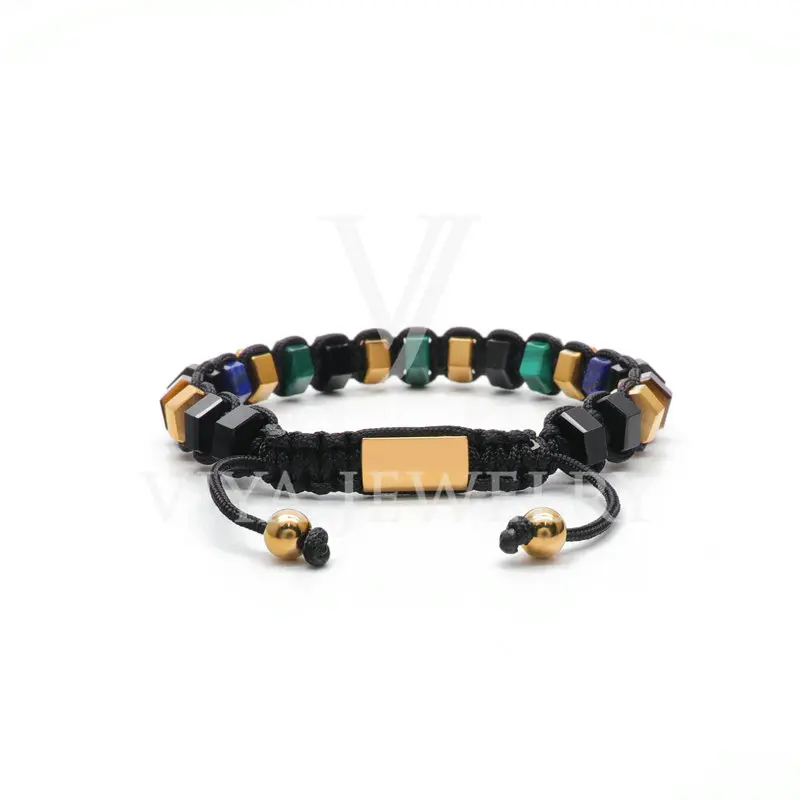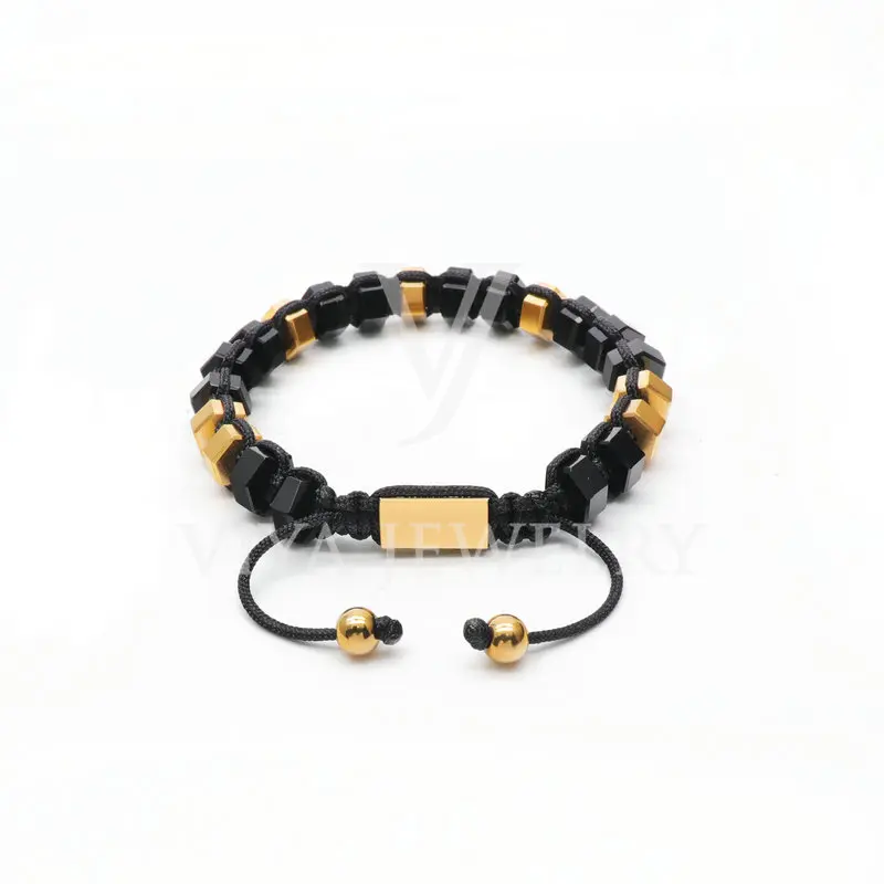 Natural Gemstone Hexagon beads mixed with 316L Stainless Steel  beads bracelet