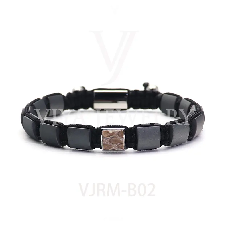 8mm Natural Gemstone mixed beads with Genuine Python leather beads bracelet