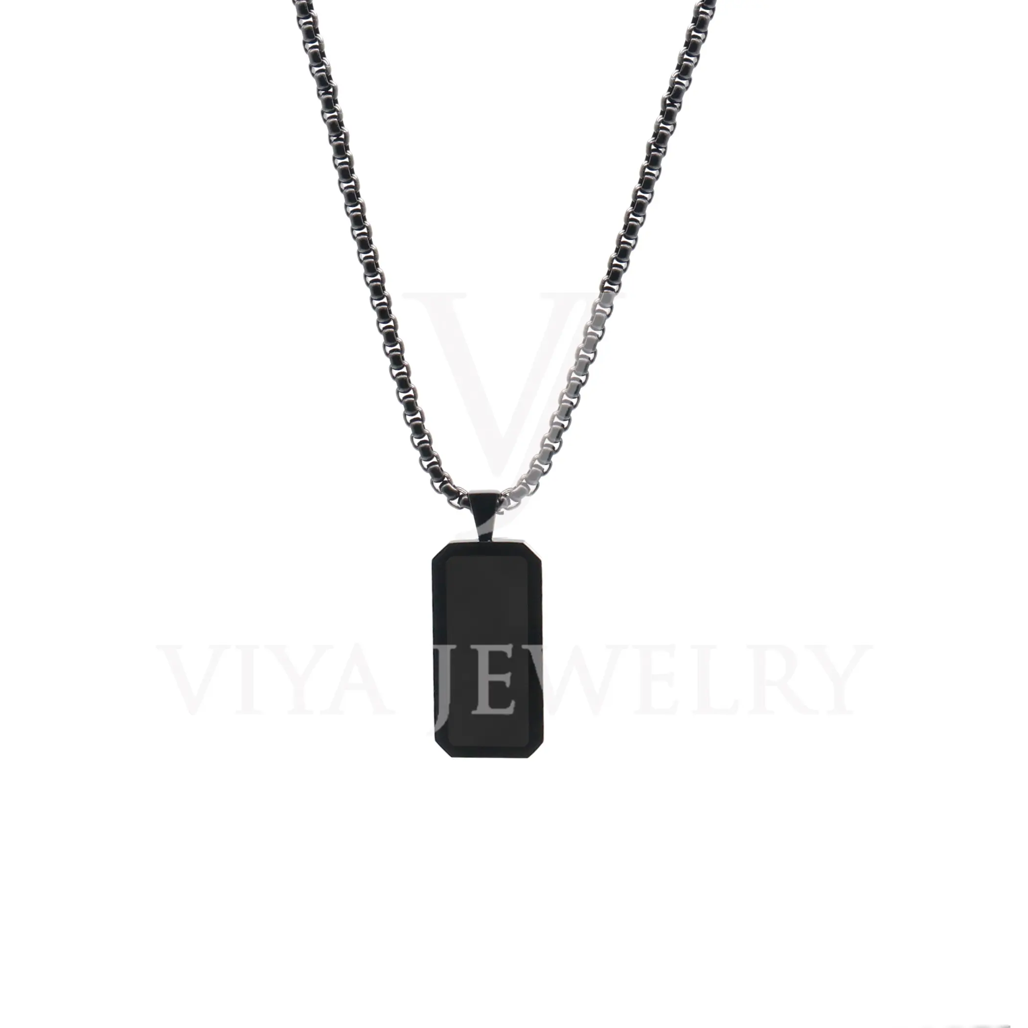 Natural Black Onyx Gemstone Necklace Stainless Steel Chains