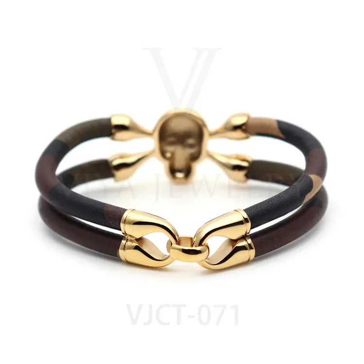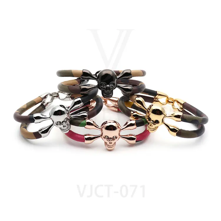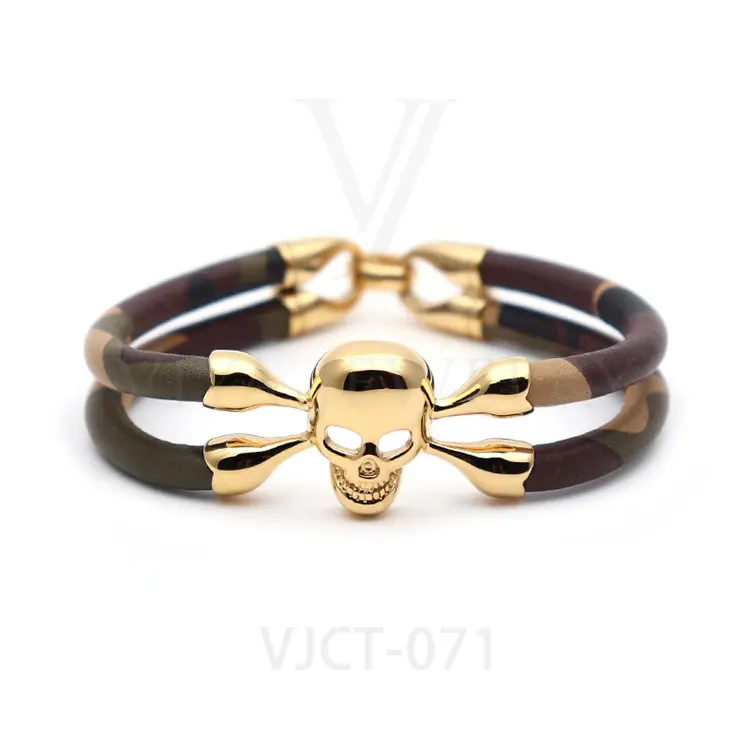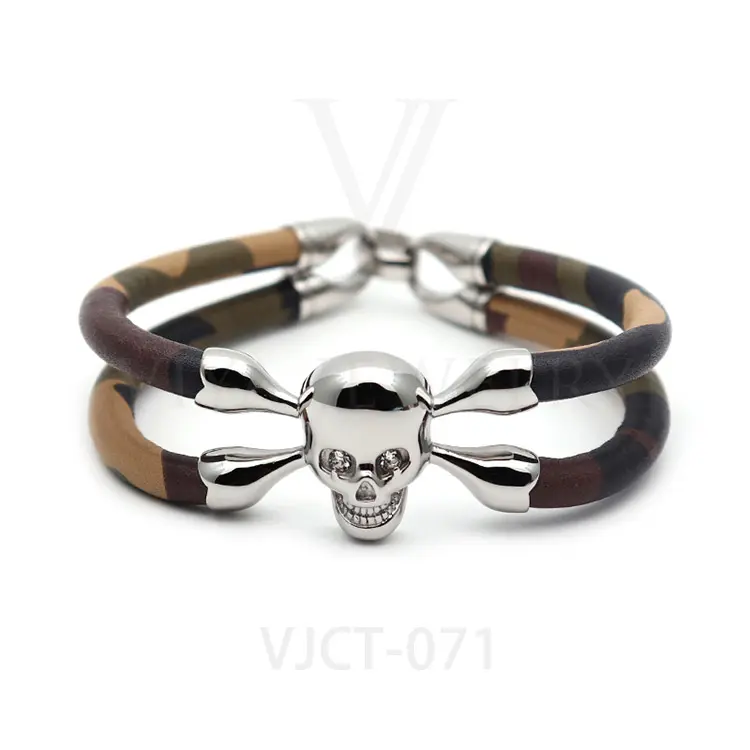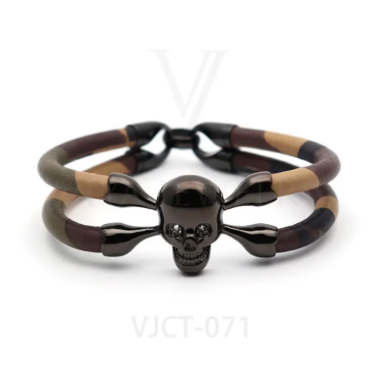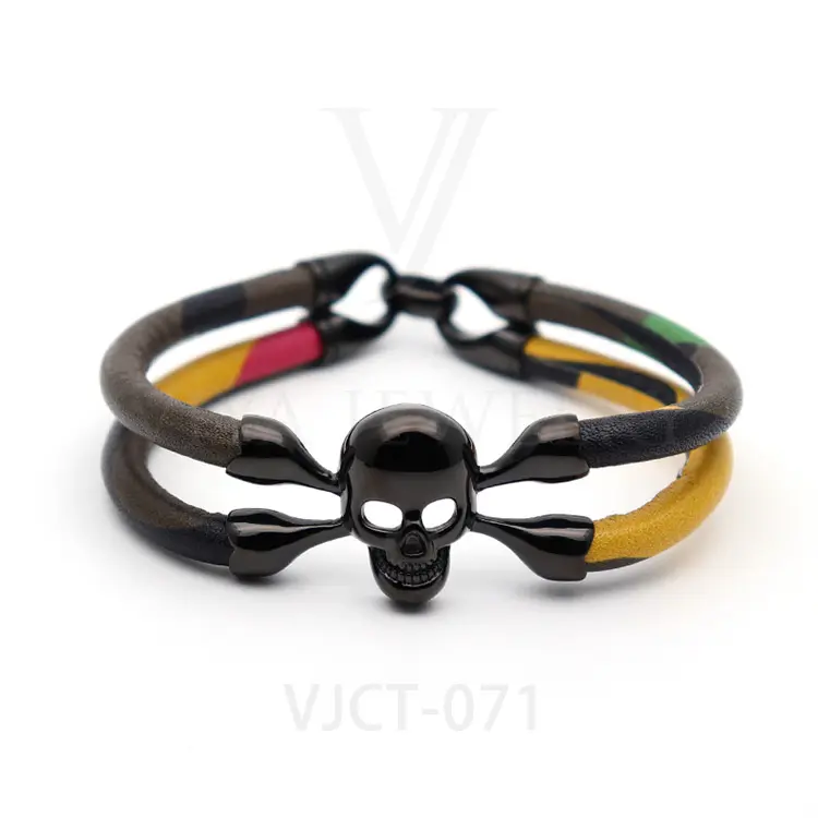 Genuine cow leather skull BraceletLeather material:Genuine cow leather