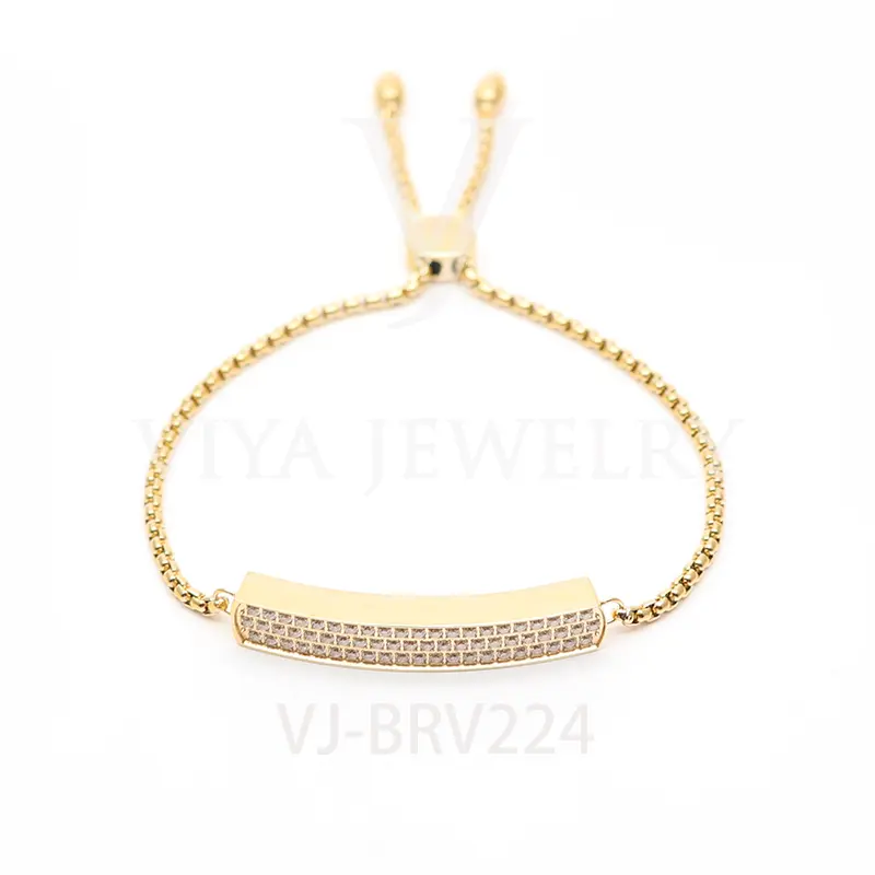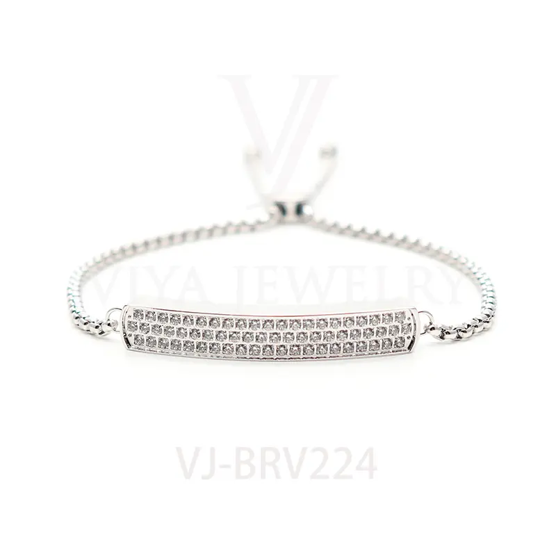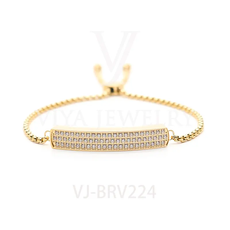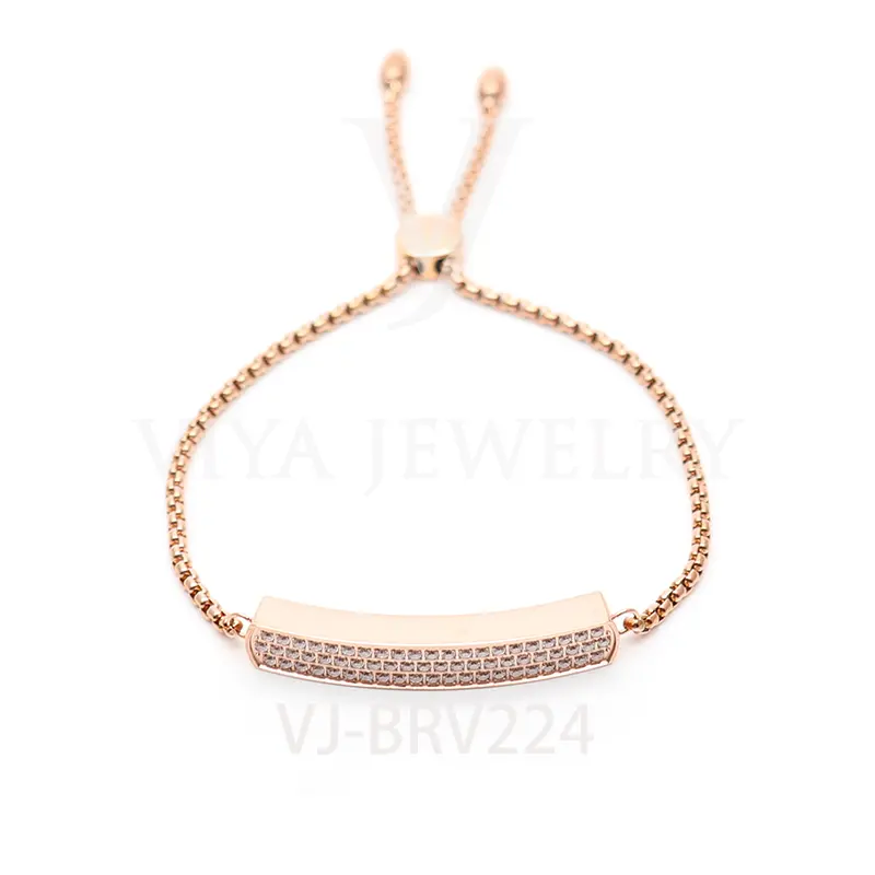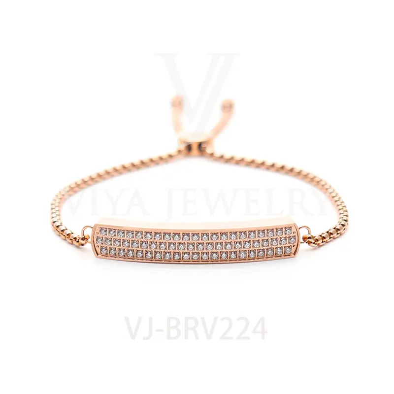 Women Popular Rectangle Stainless Steel With Stone Setting Chain Adjustable Size BraceletÂ