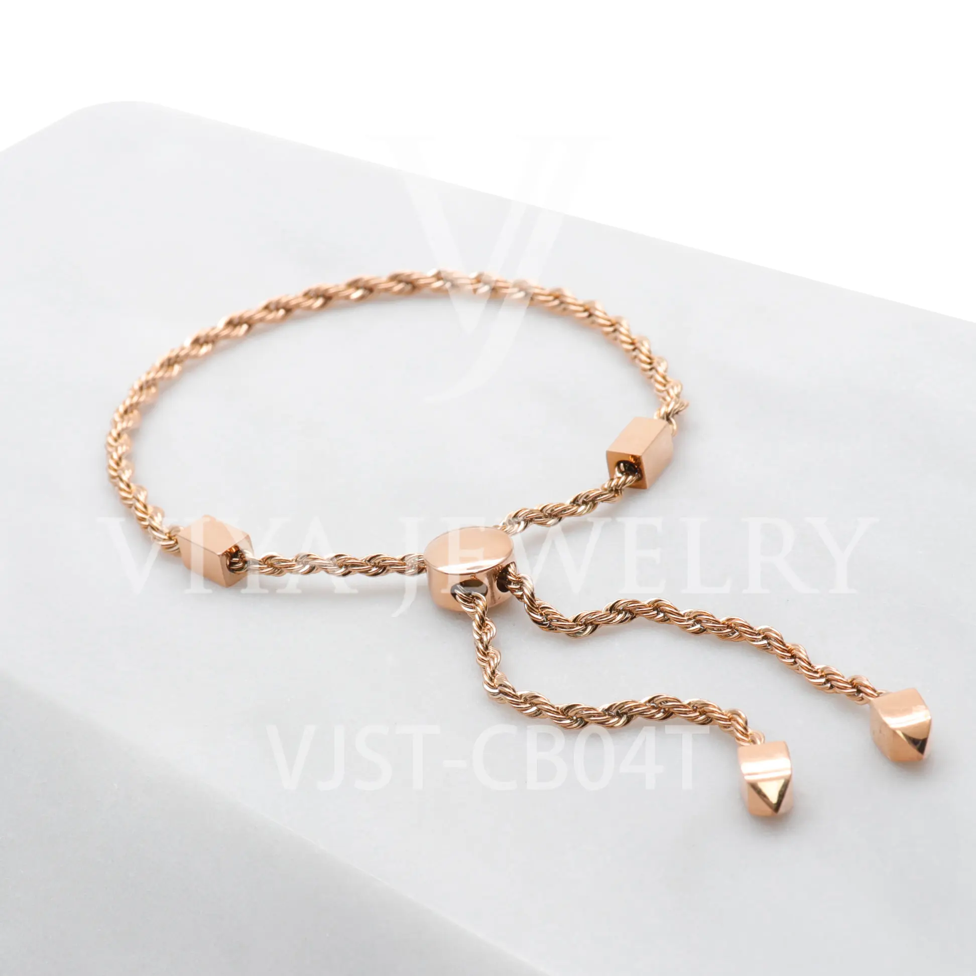 Stylish 3mm Stainless Steel Rope Chian Adjustable Size Bracelet